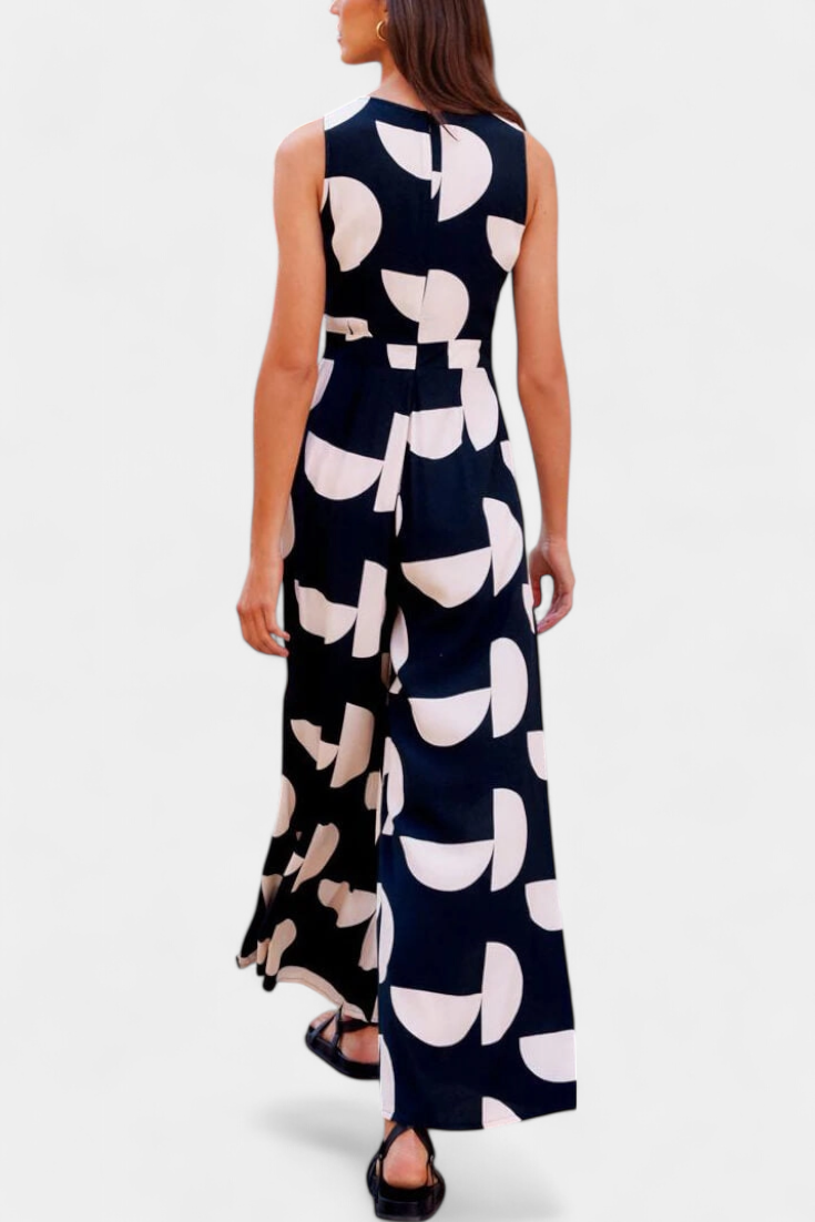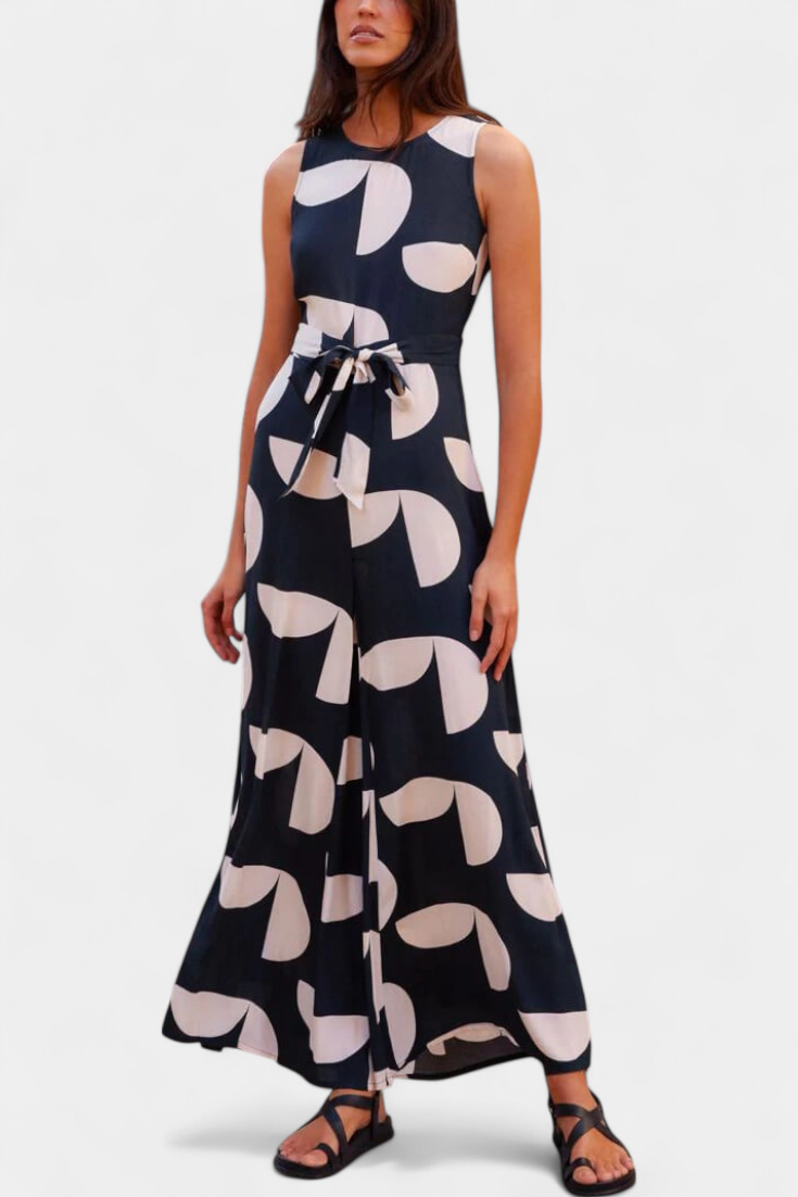 Desenhado para se destacar de forma natural, o mono Brooke combina um padrão geométrico-floral com um silhueta solta, oferecendo frescura, estilo e conforto numa única peça. A sua cintura ajustada e pernas largas tornam-no ideal para dias ativos e relaxantes.