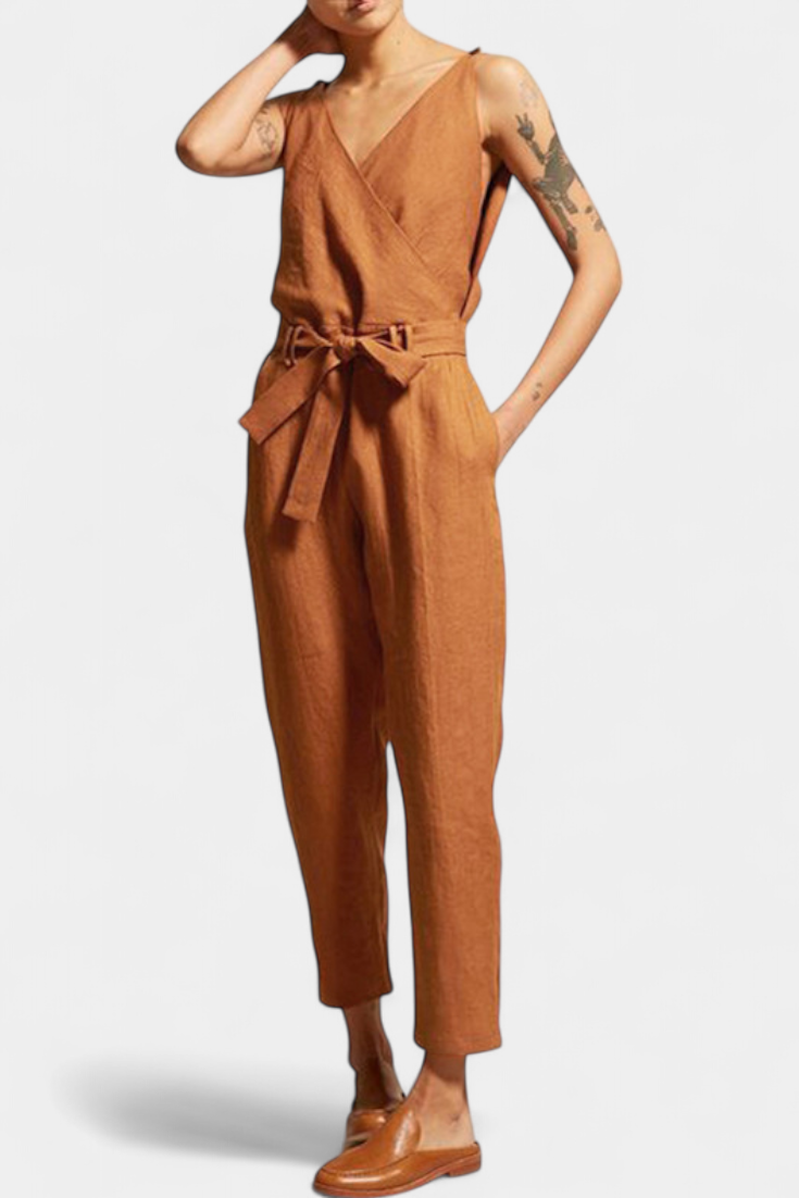 Maggie Mono sem Mangas com Decote em V e Cintura Cruzada em Algodão